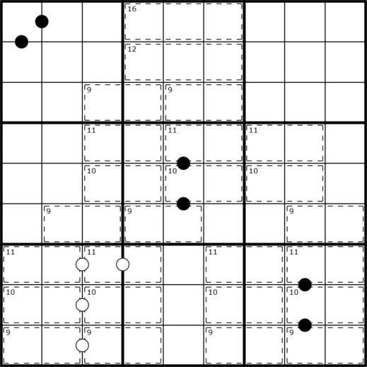 KROPKI PAIRS- Numbers with a white dot between them are consecutive. Numbers with a black dot between them are in a ratio of 2:1. Not all possible dots are given.