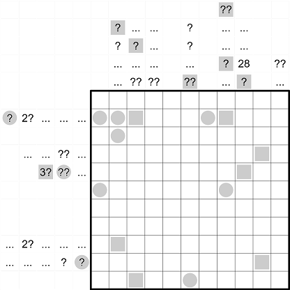 - Even/Odd: Cells marked with a grey square contain an even value. Cells marked with a grey circle contain an odd value. Every even/odd clue must contain a digit.