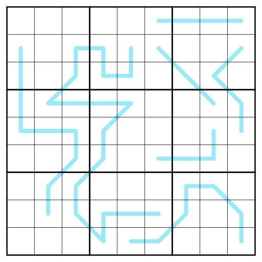 - Es gelten die normalen Sudoku-Regeln, d.h. jede Reihe, Spalte und 3x3-Region muss jede der Ziffern von 1 bis 9 genau einmal enthalten.