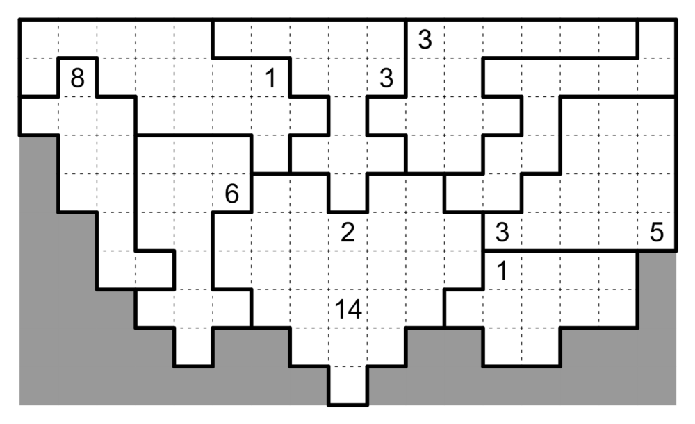 - Sub-groups that border one another through a bold region boundary may not be the same color OR the same shape (counting rotations and reflections as the same). For example, two touching S-tetrominos in different configurations is not allowed, but an S-tetromino may touch a T-tetromino.