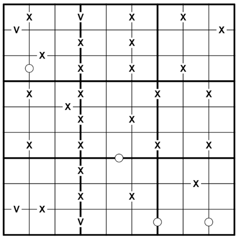 Knights Move: Digits separated by a chess knights move cannot contain the same digit.