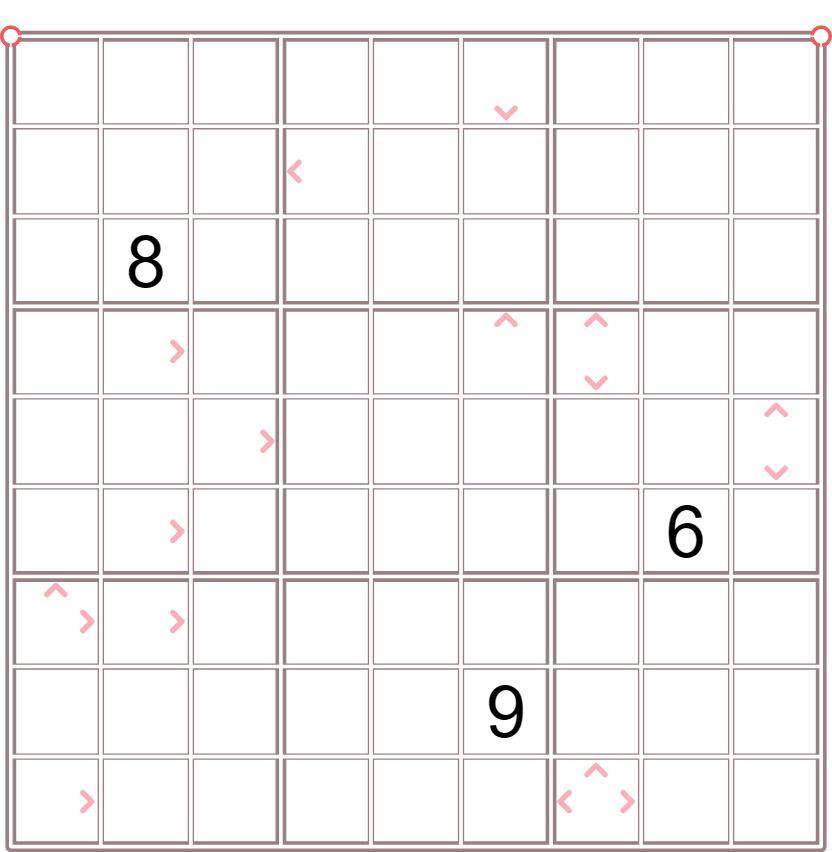 • For example, if a cell has two arrows and a 3 as its digit, each arrow sees a path piece 1 cell away (making 3 cells total including the arrow cell), and in the non-arrow directions any path piece must be at least 2 cells away.