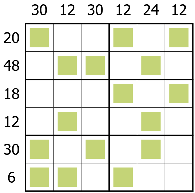 Digits outside the grid indicate the product of the shaded cells in that row or column.