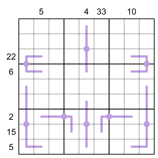Clues outside the grid give the sum of all the digits between the 1 and 9 in that row or column.