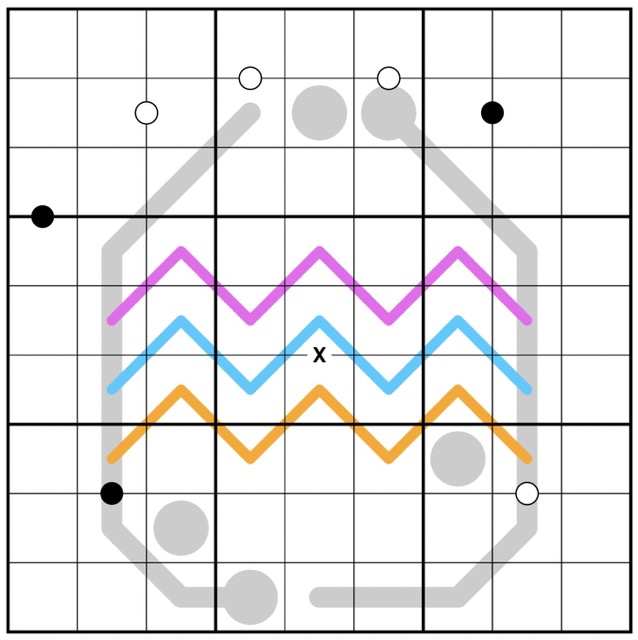 The blue line is a Region Sum line. Box borders split the line into segments. Each segment must have the same sum.