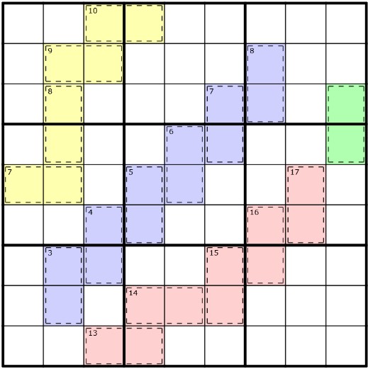 Die normalen Sudoku Regeln gelten. Außerdem gilt: