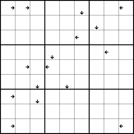 A digit in a cell with an arrow counts the total number of shaded cells seen in the direction of the arrow (not counting the cell itself).