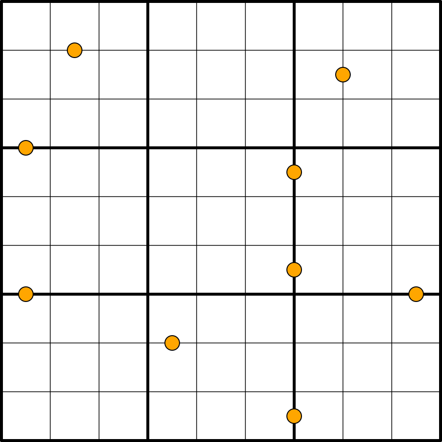 Orange dots join cells whose digits differ by at least 4.