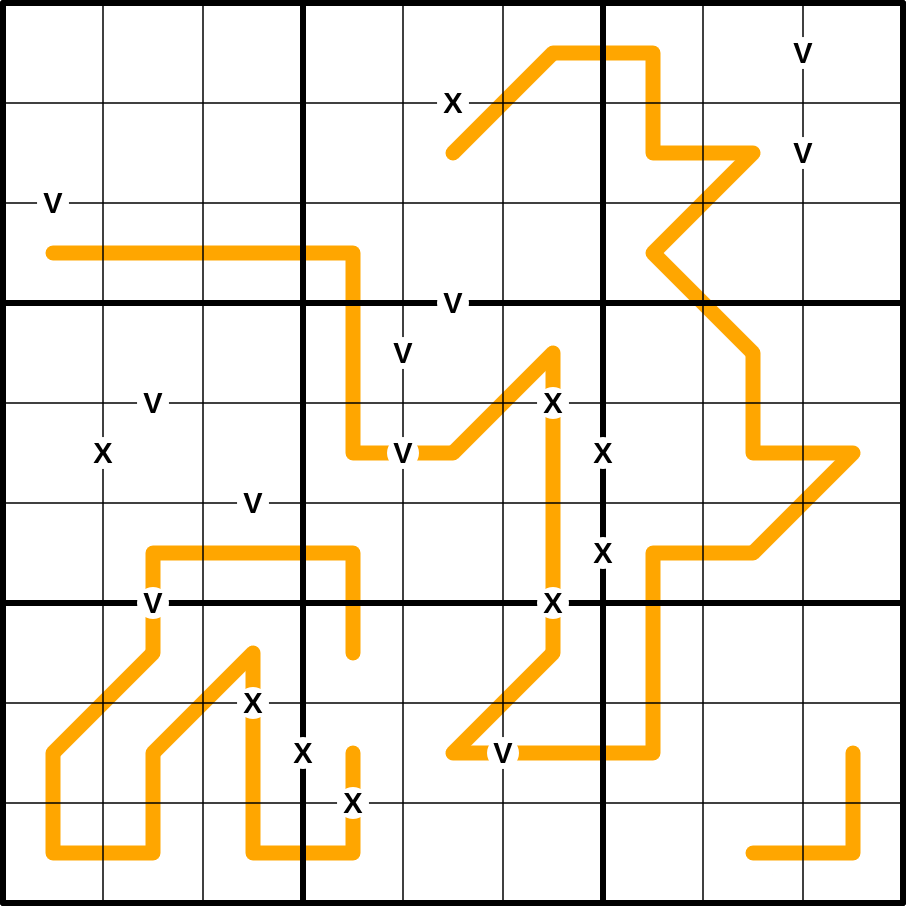 XV: Digits separated by an X sum to 10, those separated by a V sum to 5. All Xs and Vs have been given.