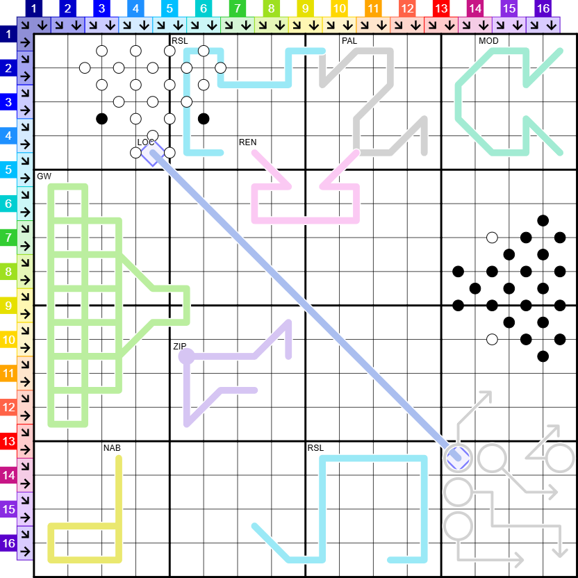 Palindrome Line (PAL): Values along a grey palindrome read the same in both directions.