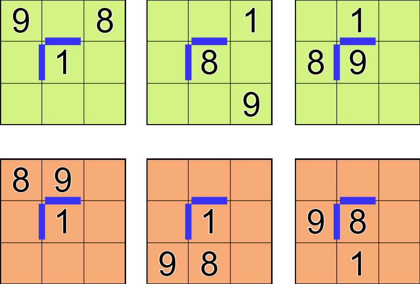 The digit 8 is a small bomb with a bomb count of 1. The digit 9 is a big bomb with a bomb count of 2.