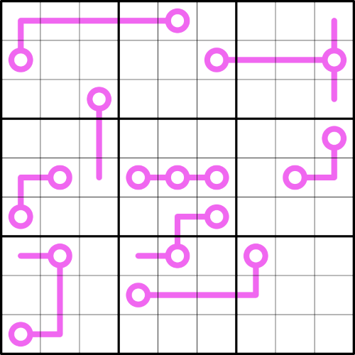 - Digits on a purple Renban line must be a set of consecutive, non-repeating digits (in any order).