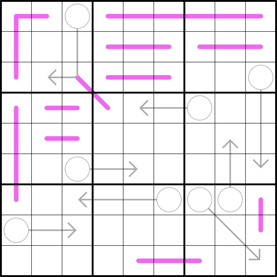 This puzzle aims to be an approachable combination of Renban lines and arrows. I hope that you enjoy the puzzle. Feedback is always appreciated! The rules are as follows:
