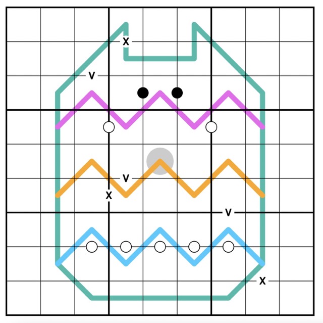 The blue line is a Region Sum line. Box borders split the line into segments. Each segment must have the same sum.
