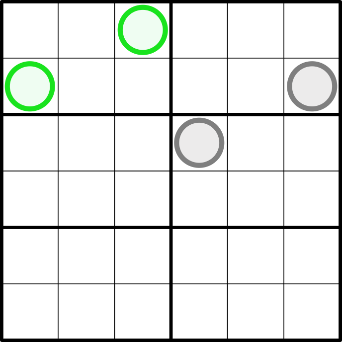 - Fill each row, column, and box with the digits 1-6 without repeats.