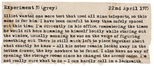 Riveting story again! Very impatient to know what Elliot locked away before he passed. Thanks for the puzzle too of course :)