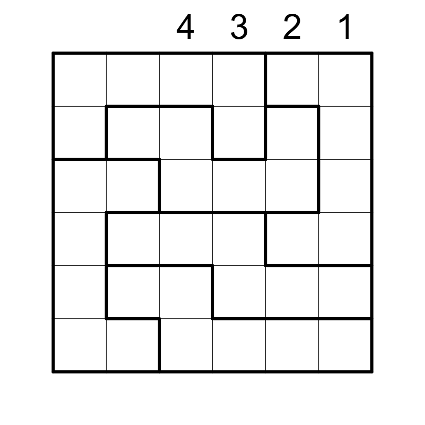 • Irregular Sudoku: Place the digits 1-6 once each in every row, column, and irregular region.